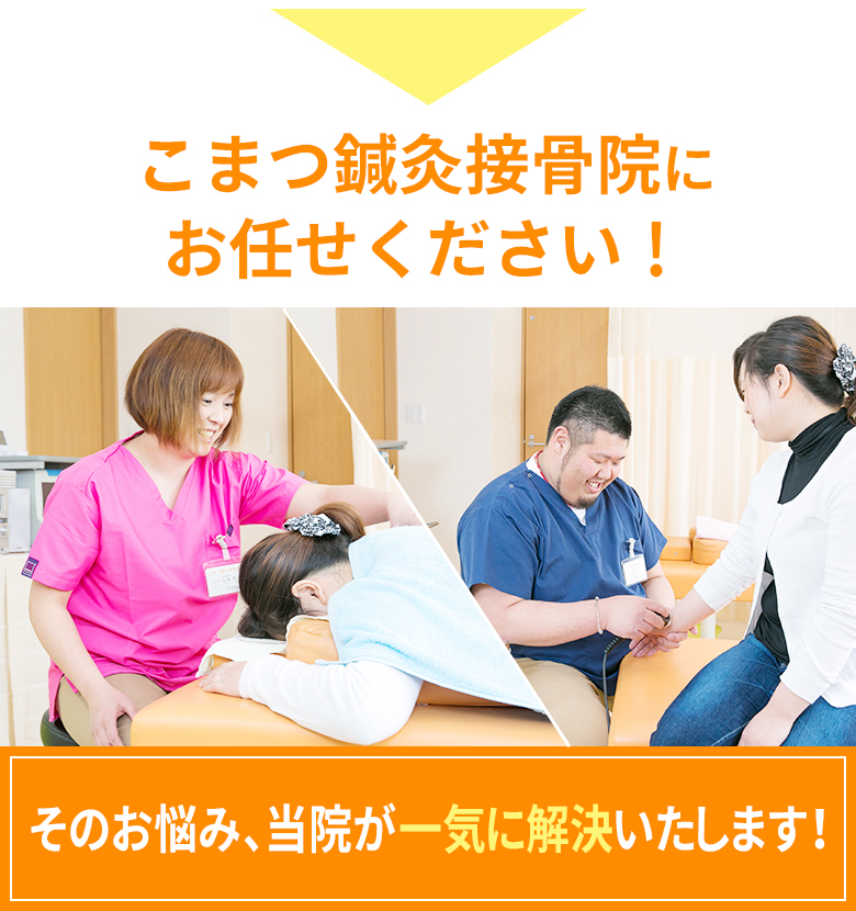 「こまつ鍼灸接骨院」に来院し、そのつらい身体の痛みや不調を根本改善しませんか?