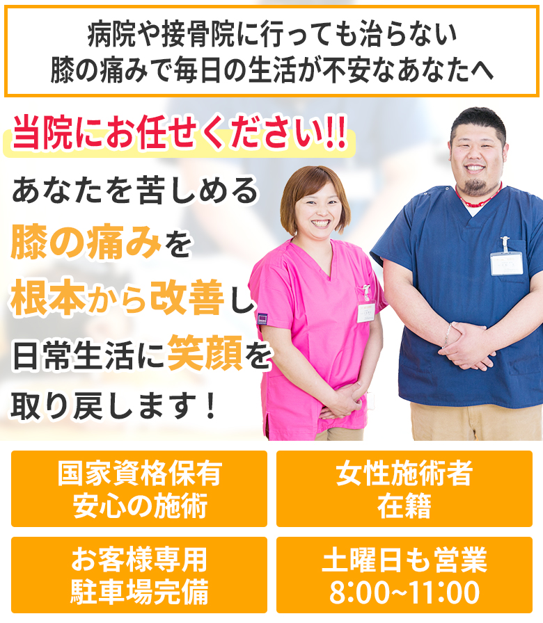 当院の院長は、経験を元に膝の治療に関しては自信と確信を持っておりますので、ご安心ください。