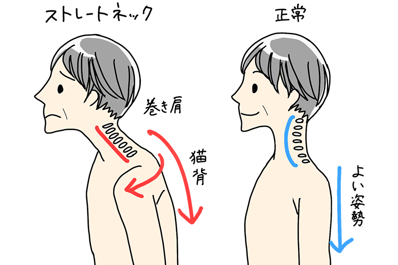 本来であれば湾曲している頸椎がいつしか真っ直ぐになり、それによってさまざまな不調を引き起こしてしまうのです。