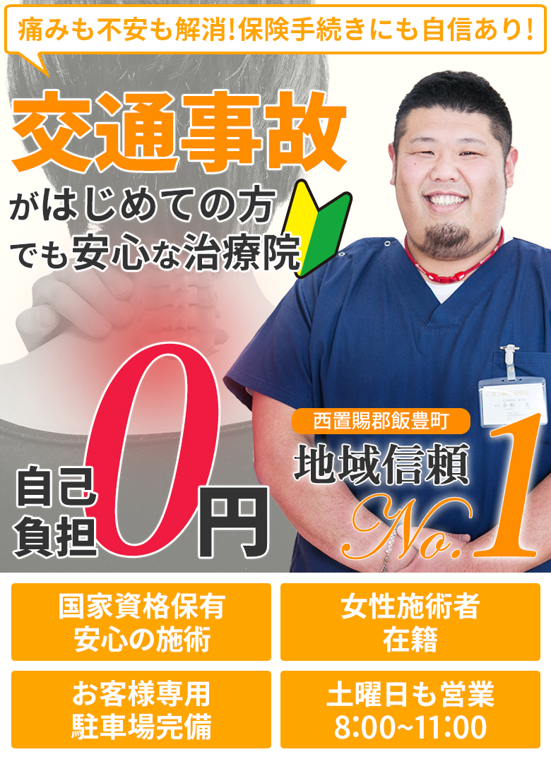 事故の直後は症状が出ないことも多く、病院の検査(レントゲンやMRI)でも異常が無いと言われることは少なくありません。